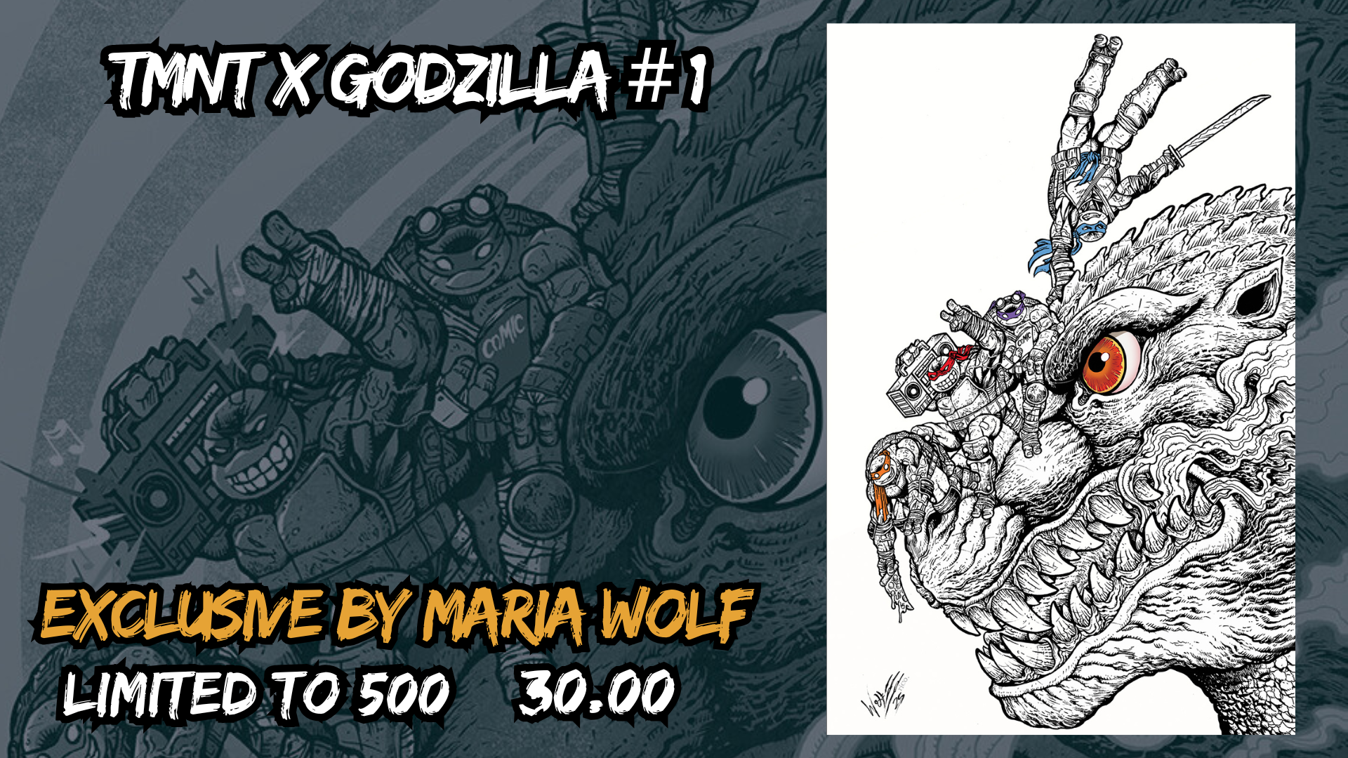 TMNT x GODZILLA #1 MARIA WOLF BLACK + WHITE VARIANT